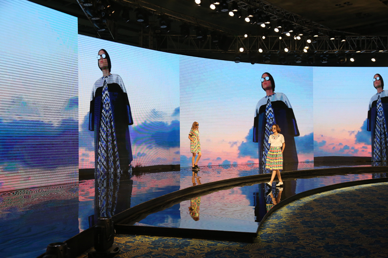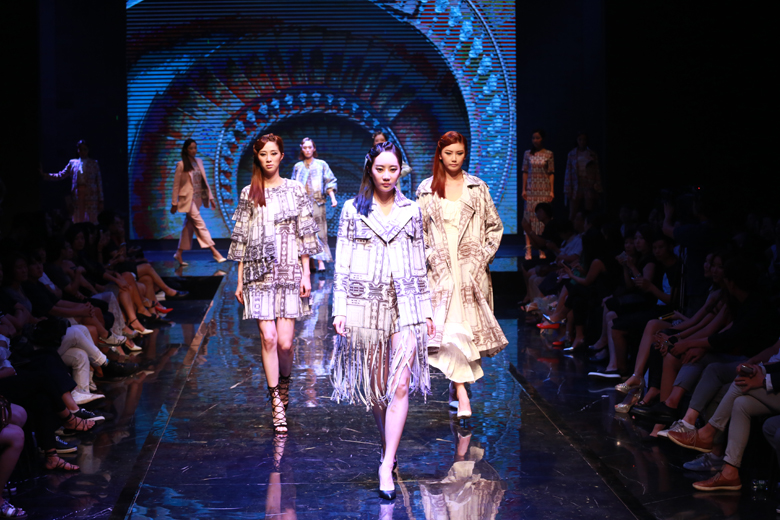 韓國時裝是紅棉國際時裝城的一支重要時尚力量,8月25日,“韓國時尚”接棒,旅居意大利米蘭的韓國設計師Rick Lee帶著他的最新作品炫麗登臺。秀場充滿著公路電影的即視感,從西方走到東方,從基督教到伊斯蘭教,風景的更迭、文化的碰撞暗喻設計師生于韓國、盛于米蘭的背景。信仰與藝術的交匯,碰撞出一系列美輪美奐的數碼印花,設計師采用大量拼接、挖空的幾何切割來突出摩登未來感。兩種音樂的應用讓觀眾產生時空錯位,與秀場主題緊緊呼應。Rick Lee的發布獲得了在場嘉賓、觀眾的一致贊嘆。