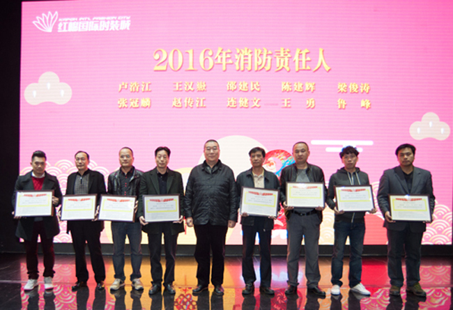 2016年2月5日下午,紅棉國際時裝城“2015年終總結表彰大會”在十樓紅棉國際時尚中心隆重舉行,全體員工參加了大會。會上,卜曉強總經理作了《紅棉國際時裝城2015年工作總結及2016年工作計劃報告》,并為2016年各部門消防責任人頒發任命書。盧浩江副總經理分別為榮獲年度先進個人、年度先進工作者、年度優秀管理者、年度先進班組及年度優秀部門頒發榮譽證書與牌匾。