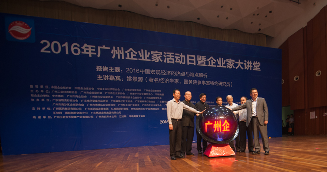 2016425日下午,由廣州工業經濟聯合會、廣州市企業聯合會、廣州市企業家協會(簡稱“三會”)、廣州市中小企業服務中心、羊城晚報共同主辦的“2016年廣州企業家活動日暨企業家大講堂”活動在廣州白云國際會議中心舉行。