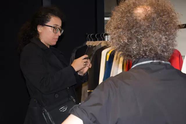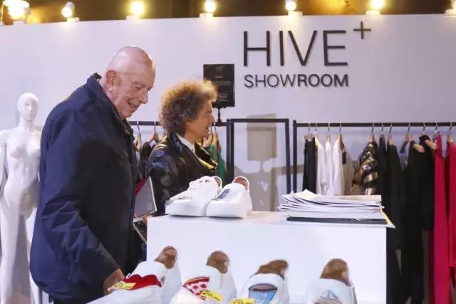 在上海時裝周,Sara Maino走進了HIVESHOW ROOM的會場。在工作人員的陪同下仔細地瀏覽了當天會場中所展示的服裝以及配飾,對其贊不絕口。