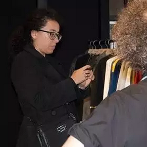與此同時(shí),Vogue雜志意大利版負(fù)責(zé)人SaraMaino也親臨現(xiàn)場(chǎng),對(duì)HIVE-showroom的產(chǎn)品表示了極大興趣,并與HIVE的意大利買(mǎi)手們相談甚歡。
