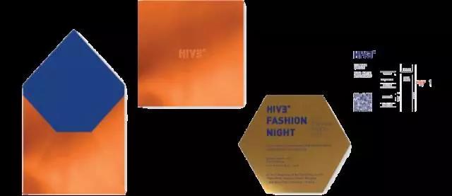 HIVE通過整體的識別系統的應用塑造先鋒個性的形象。 品牌標志的三種色彩在物料應用上主要通過高光的亮橙鋁箔紙、啞光金卡紙與觸感獨特的藍色滑面紙搭配呈現,這種利用材質搭配呈現品牌的先鋒個性,能在與消費者傳播的終端上塑造出一種立體的時尚形象。