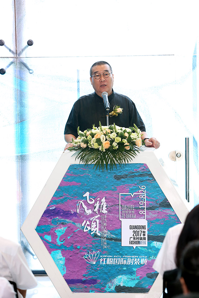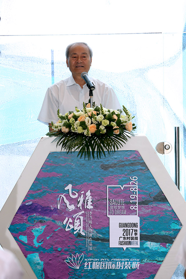 中國(guó)服裝設(shè)計(jì)師協(xié)會(huì)原主席、清華大學(xué)美術(shù)學(xué)院教授李當(dāng)岐鄭重地向杜鈺洲表示感謝,老會(huì)長(zhǎng)杜鈺洲堅(jiān)持創(chuàng)作的精神激發(fā)了他重拾畫筆的決心,感謝為畫展獻(xiàn)出墨寶,寫下“風(fēng)雅頌”的題字;此外,他又衷心感謝紅棉促成了本次展覽在廣東時(shí)裝周的舉行,提供了一個(gè)與行業(yè)同仁進(jìn)行文化交流的機(jī)會(huì)。