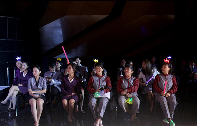 在晚會中,各部門爭相T臺走秀,展現(xiàn)部門時(shí)尚風(fēng)采。