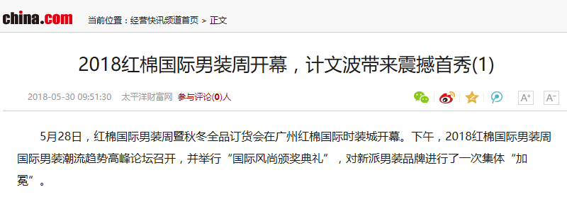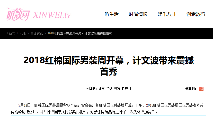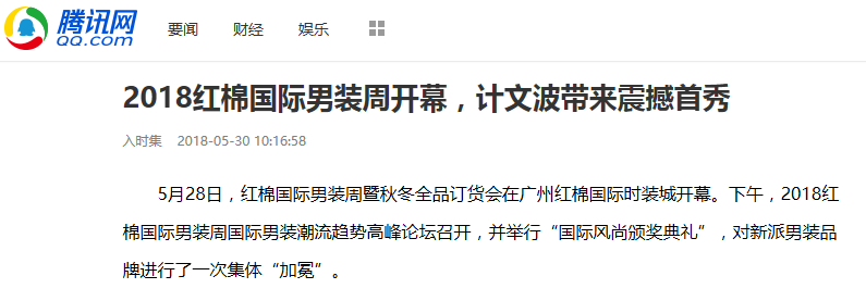 本次紅棉國際男裝周在業(yè)界引起了極大的轟動,吸引了無數(shù)人的關(guān)注,并且獲得了十余家主流媒體的報道。